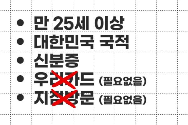 - 대출신청자는 만 25세 이상이어야 합니다. 모든 성인이 가능한 것이 아님에 주의하십시오.